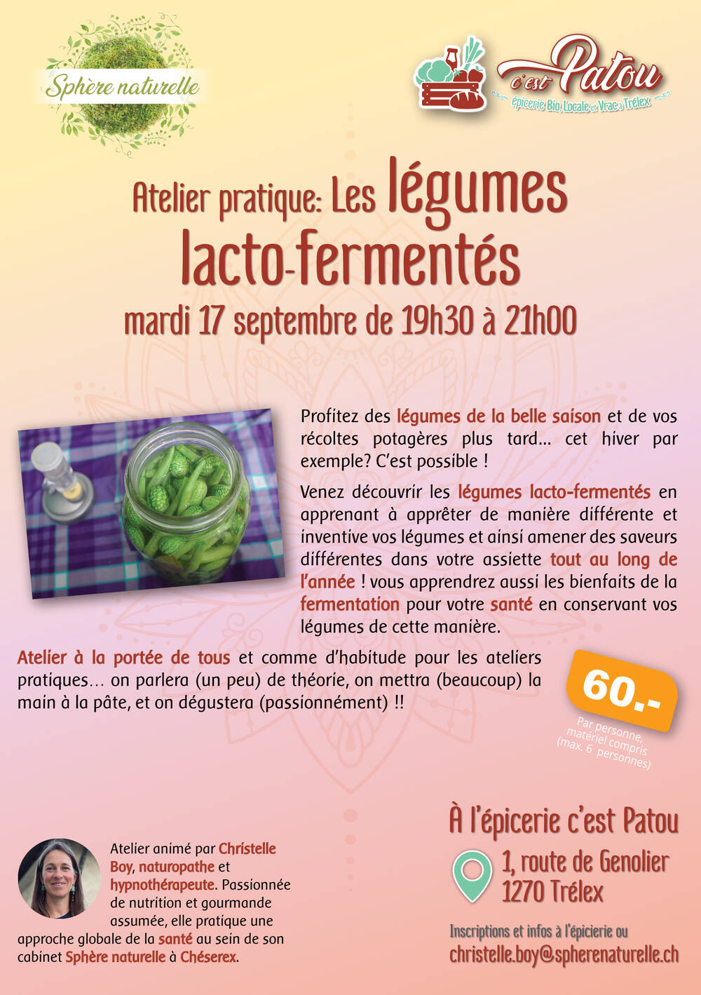 C'est l'occasion d'apprendre à apprêter de manière différente et inventive vos légumes et ainsi amener des saveurs différentes dans votre assiette tout au long de l’année ! Vous entendrez aussi les bienfaits de la fermentation pour votre santé en conservant vos légumes de cette manière.