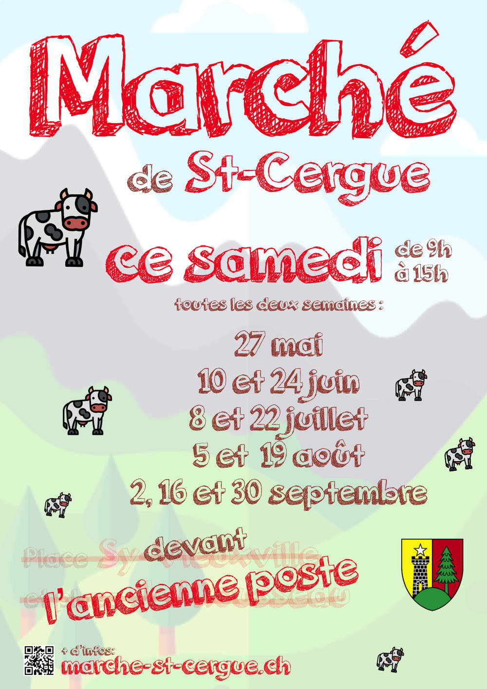 Ce samedi, le Marché de St-Cergue se déplace devant l’ancienne poste (route d’Arzier).