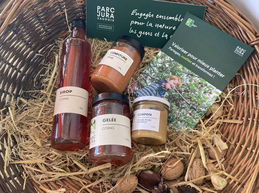 A côté de ces délices issues d’arbres proches de chez nous, vous trouverez à l’épicerie d’autres produits labellisés Parc Jura Vaudois ou Parc Suisse : les tisanes du Jardin des Ochettes à Mollens, les yogourts, fromages et divers produits laitiers de vache et brebis du Sapalet ou de la fromagerie Fleurette.