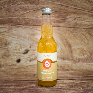 Ce kombucha est fabriqué selon une recette traditionnelle, il a un goût particulièrement délicieux et rafraîchissant. Pendant le processus de fermentation, le kombucha est mis en bouteille non pasteurisé, sans additifs, afin de maintenir les enzymes actives. Le gaz carbonique contenu se forme pendant la fermentation (fermentation en bouteille) et n'est pas ajouté. Les levures fermentent presque entièrement le sucre résiduel en alcool (jusqu'à un maximum d'environ 1,8% vol.), ce qui libère du gaz carbonique.