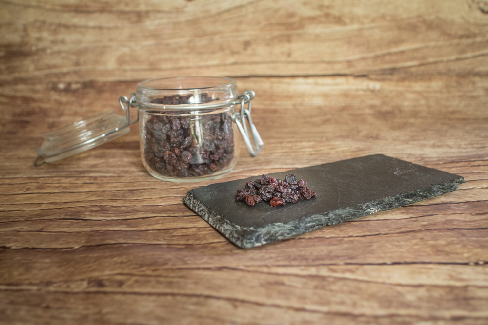 La variété de raisin de Corinthe (Vitis vinifera apyrena) provient de la ville de Corinthe en Grèce, comme son nom l'indique. Ils ne contiennet pas de pépins, ils sont petits, à peau fine, de couleur violacée foncée. Ils sont délicieux et fruité.