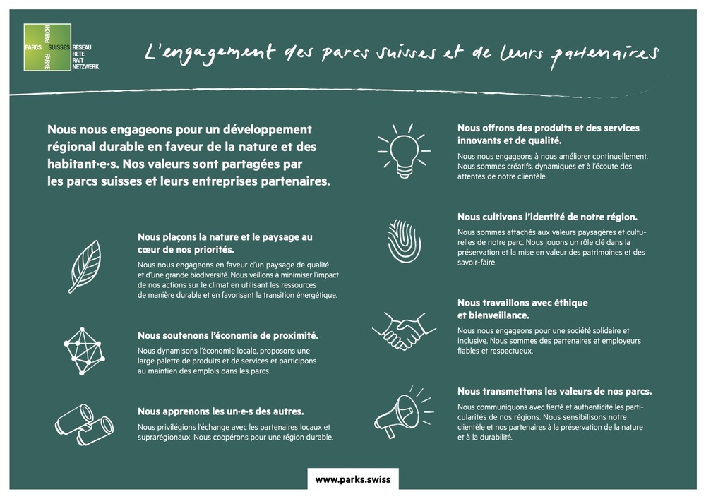 • La promotion de la durabilité dans la région, conformément aux 7 valeurs des parcs suisses